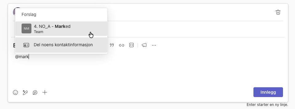 • poster riktig i team og kanal