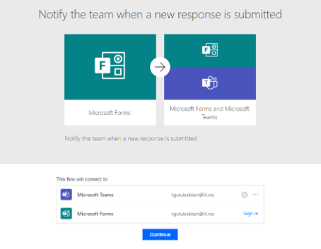 Med hjelp av Power Automate kan du også legge inn automatiserte flyter for svarene du mottar. Du kan for eksempel lage en flyt som gjør at du får varsling på Teams hver gang noen fyller inn skjemaet ditt eller laster opp en fil.