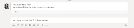Når du har fylt inn feltene og aktivert skjemaet, vil varsling i Teams trigges for hver respondent: